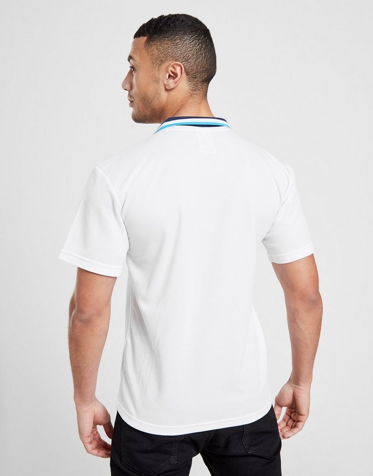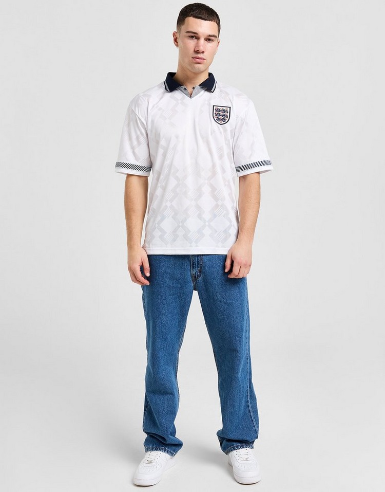 Famously worn by new order's bernard sumner in the world in motion video, the iconic england 1990 third shirt has been faithfully recreated by score draw.